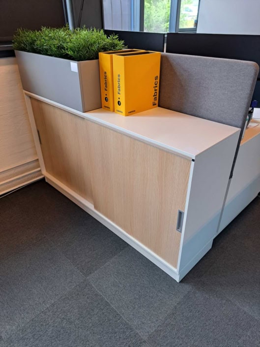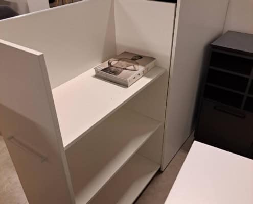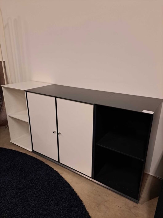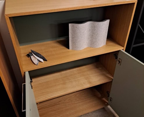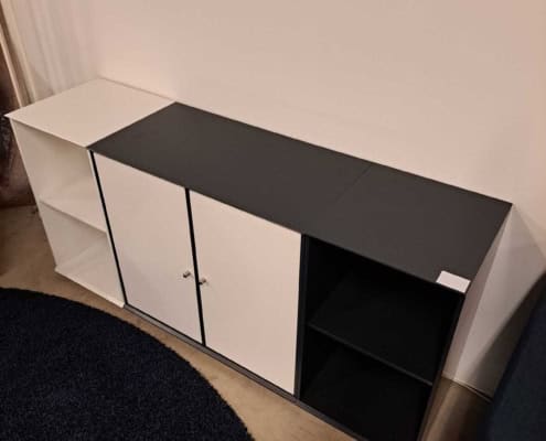 Counterbord med aftagelig plade i egetræ, som rumdeler