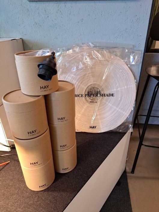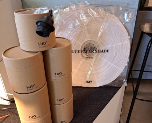 HAY lampesokler E27 og HAY Rislampe Ø50