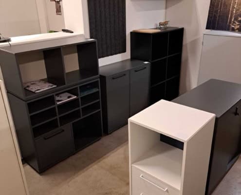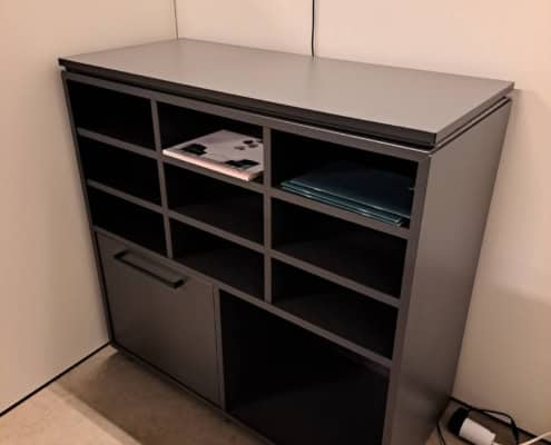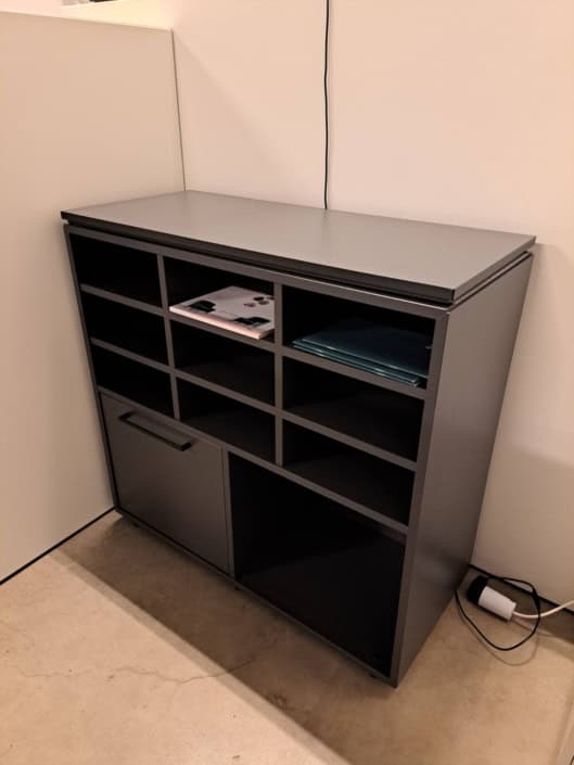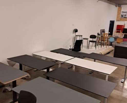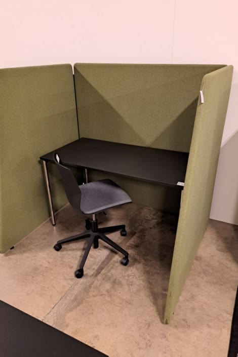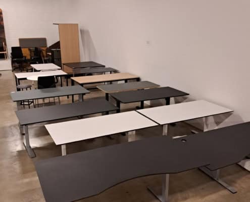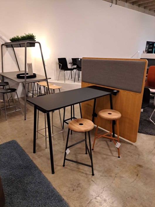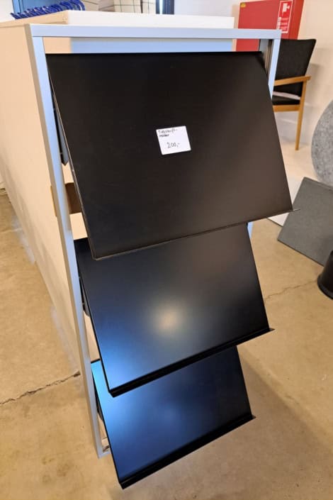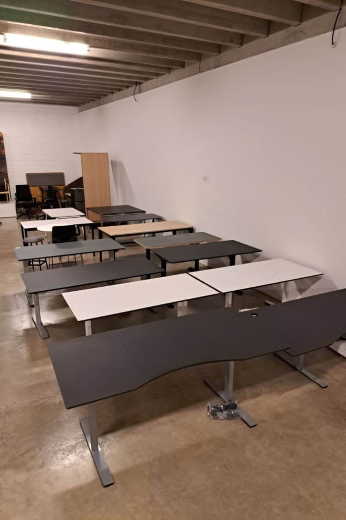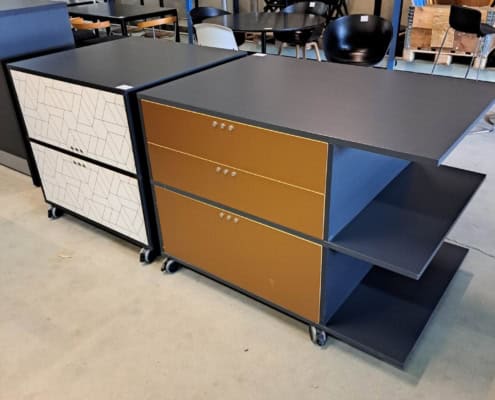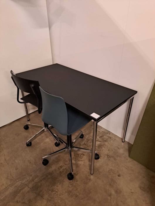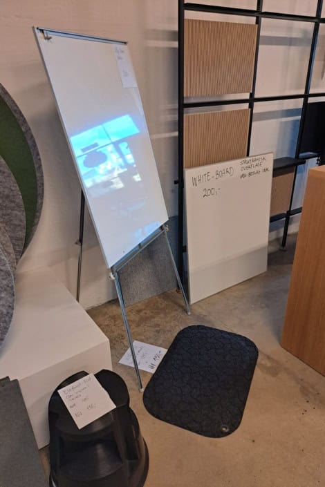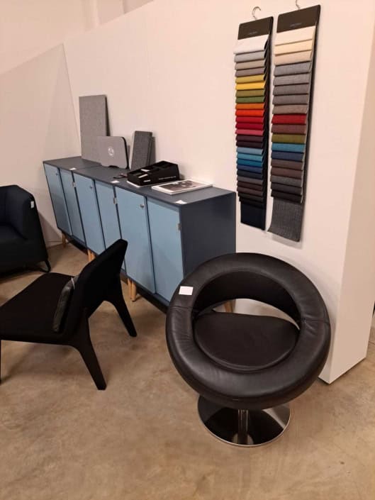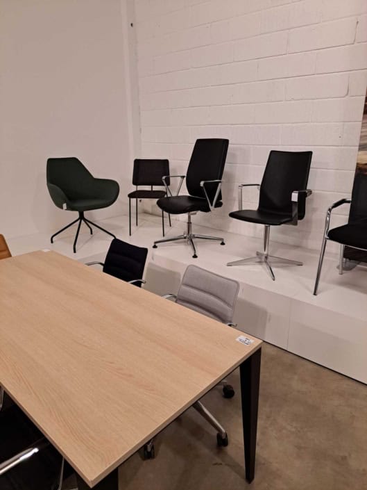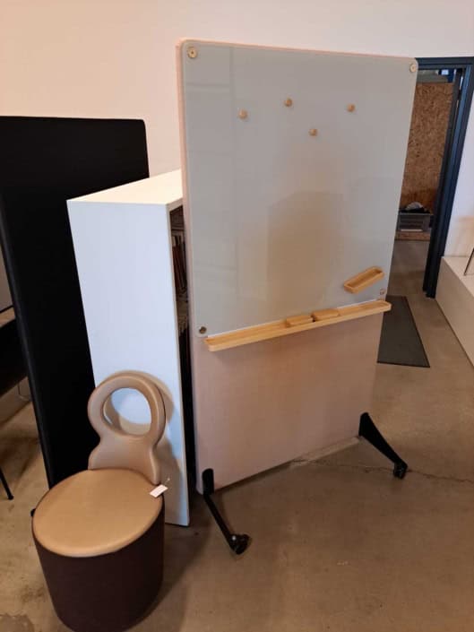 Demo Kontorskabe = 400,- | Demo Gubi Stay lounge Chair = 2000,- | Demo 12 prs. Mødebord Sort linoleum 2500,-