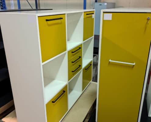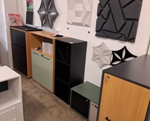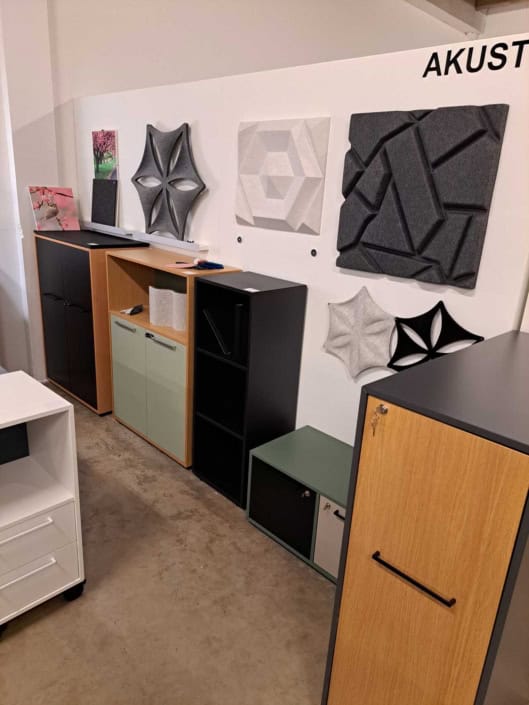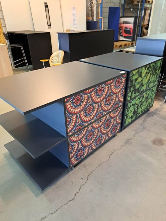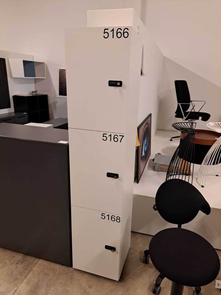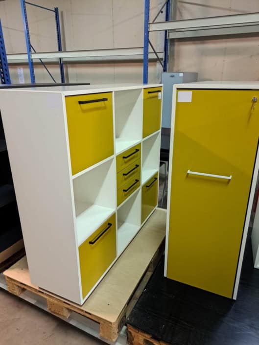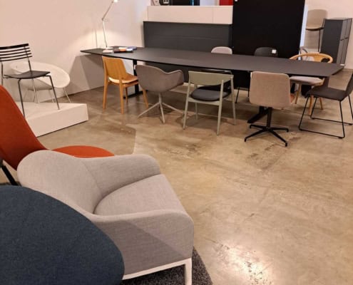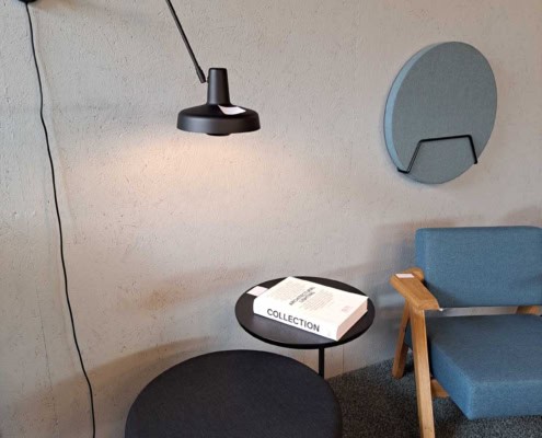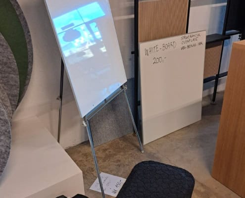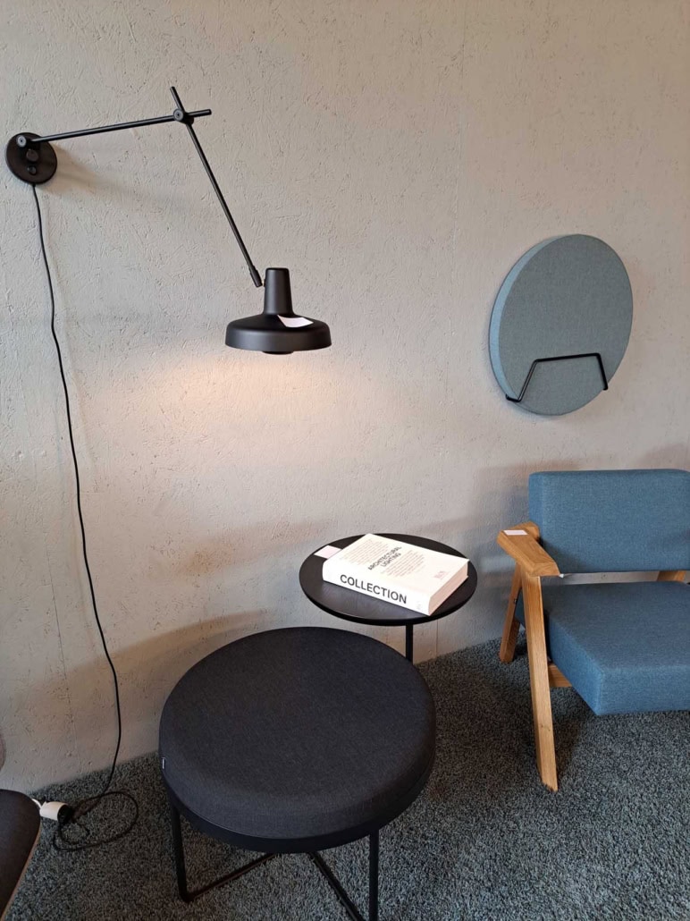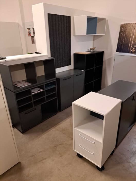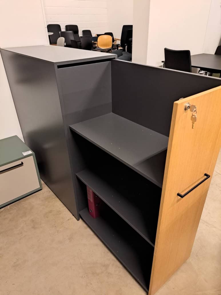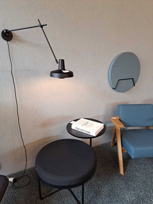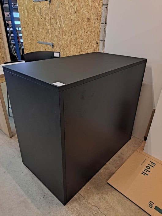 Demo Kontorskabe = 400,- | Demo Gubi Stay lounge Chair = 2000,- | Demo 12 prs. Mødebord Sort linoleum 2500,-