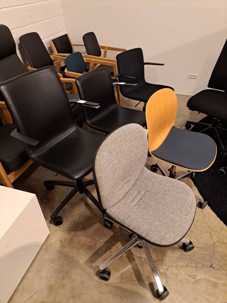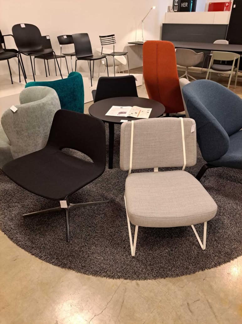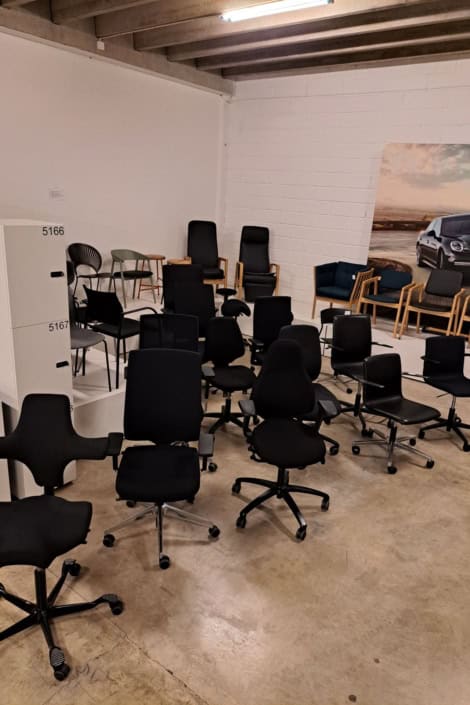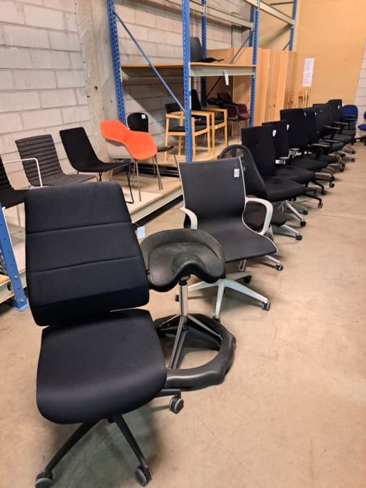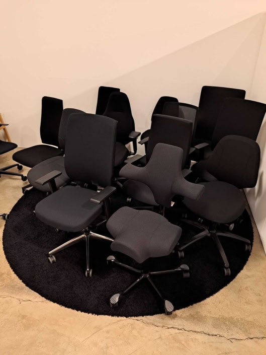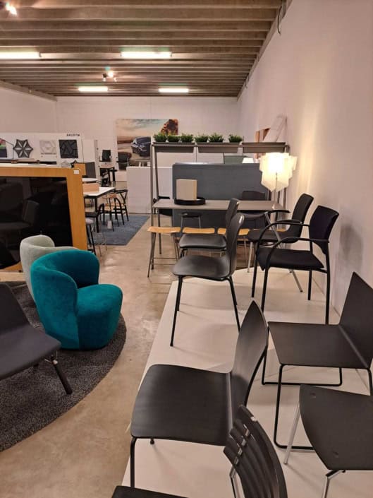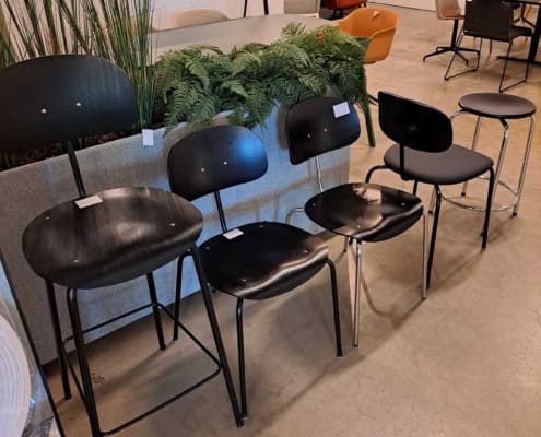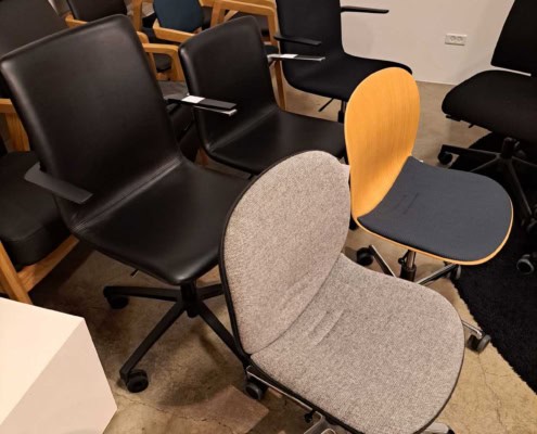 DEMO kontorstole = 800,-  | Genbrugs Kontorstole = 200,- | Genbrugs Hay, About a Chair = 150,- | Genbrugs Vico Duo stole = 300,-  |  Diverse loungestole 800,-