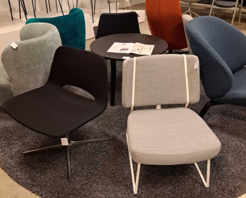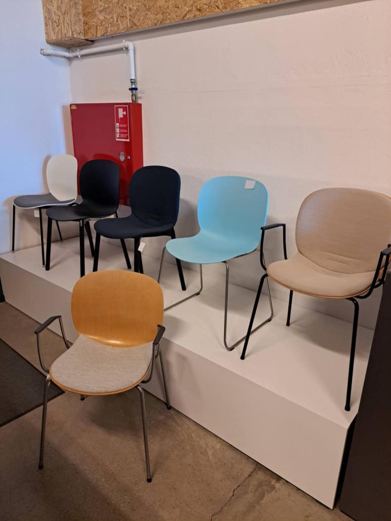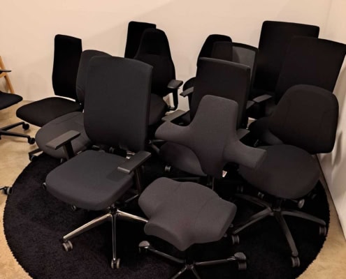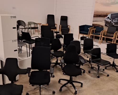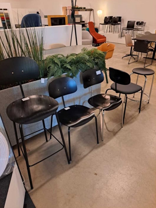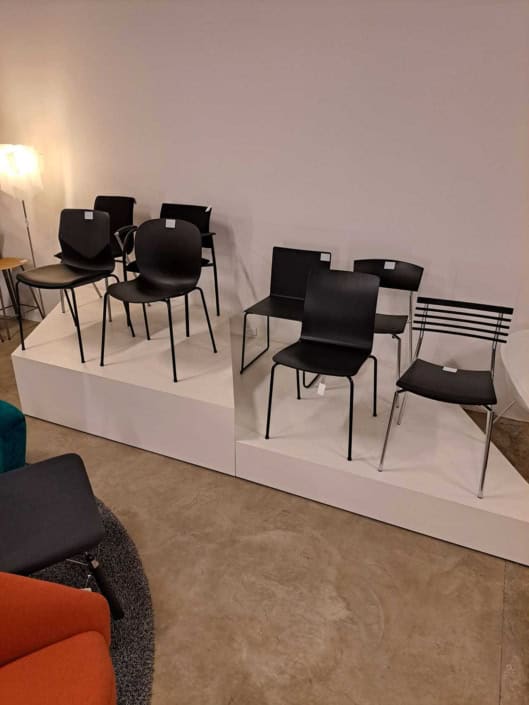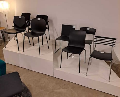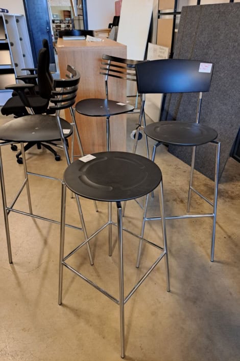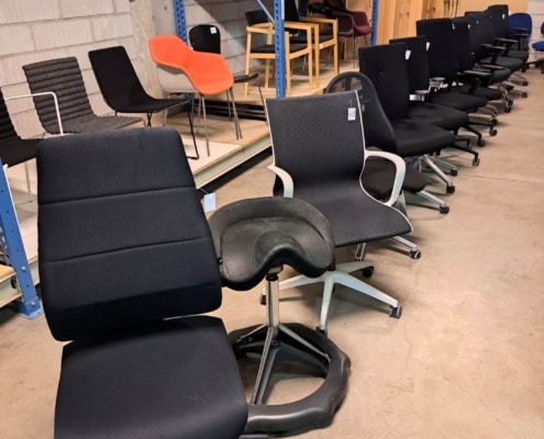 DEMO kontorstole = 800,-  | Genbrugs Kontorstole = 200,- | Genbrugs Hay, About a Chair = 150,- | Genbrugs Vico Duo stole = 300,-  |  Diverse loungestole 800,-