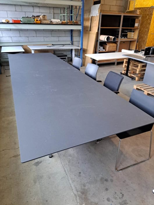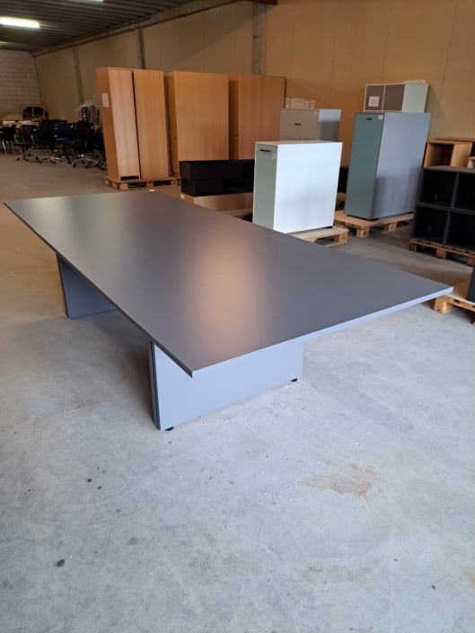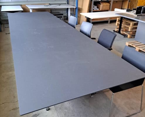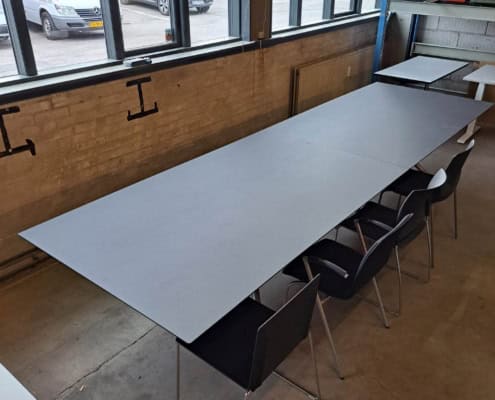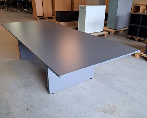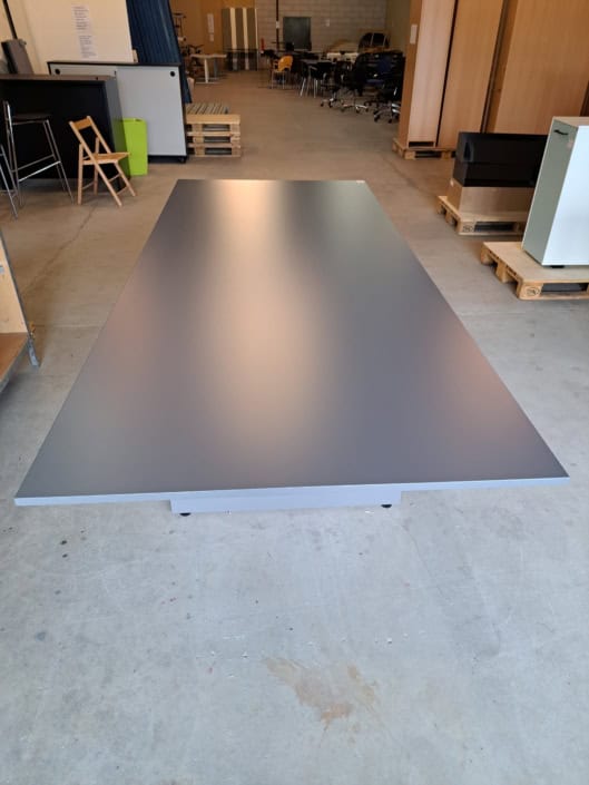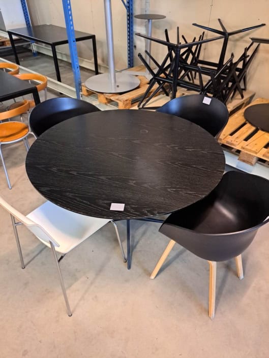 Mødebord 12-14 prs. Tøndeform, Sort linoleum