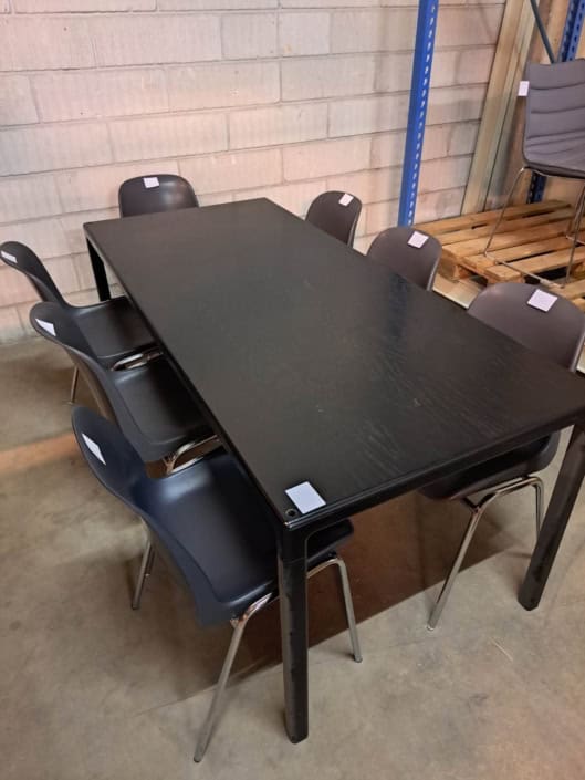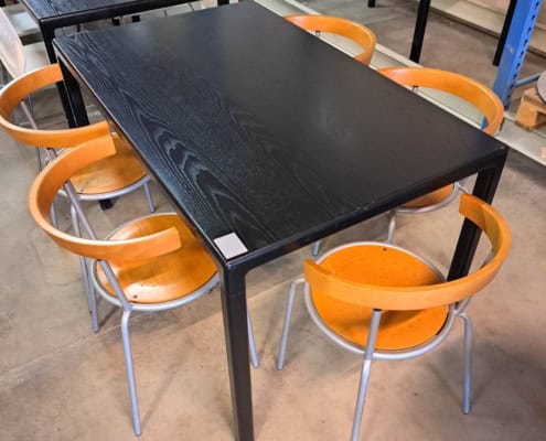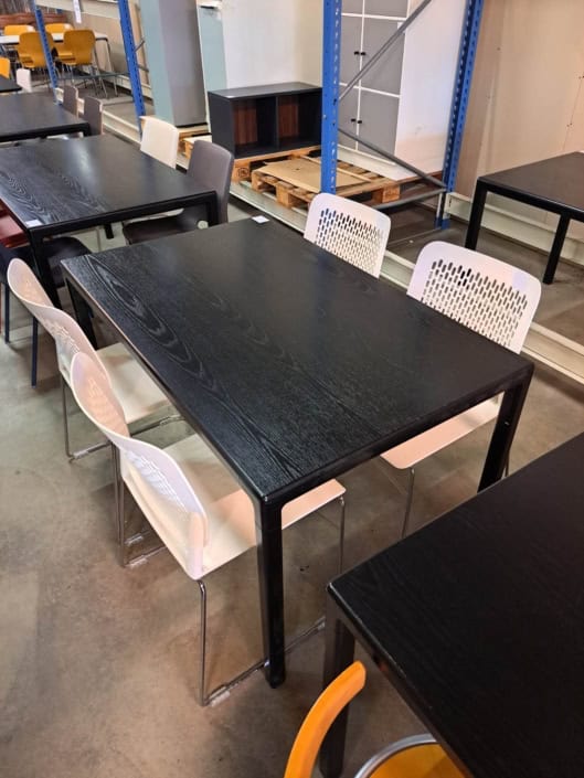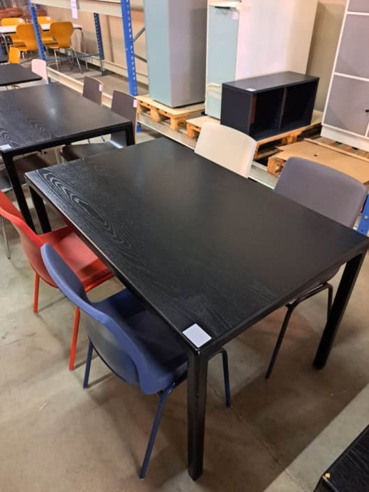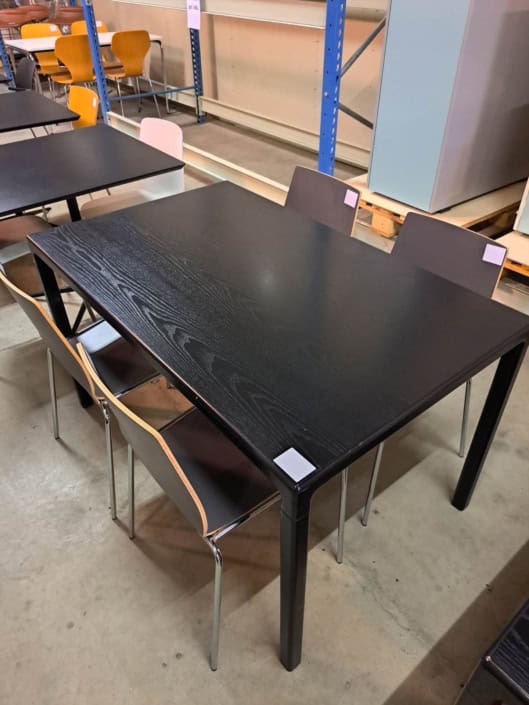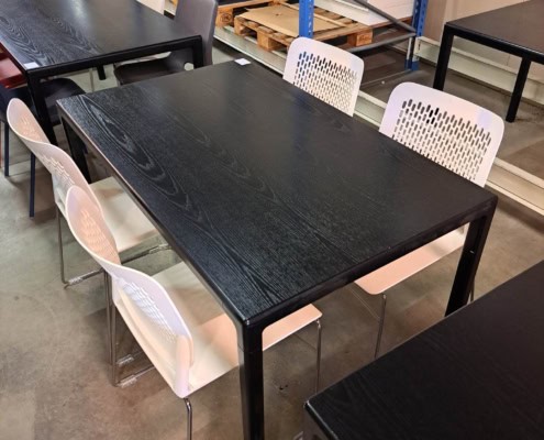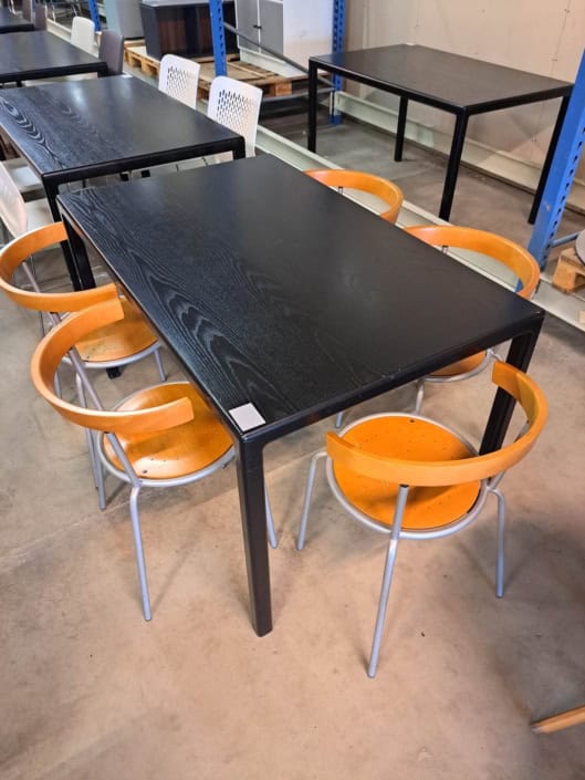 Bord 70*140 cm, med plade i sort ask og sort pulverlakeret stel.
