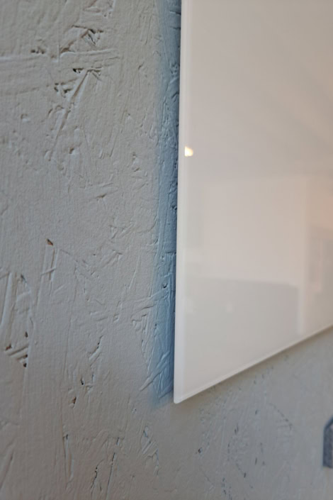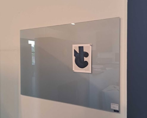Glastavle som “whiteboard”, magnetisk, inkl. underhylde, penneholder og visker i træ.