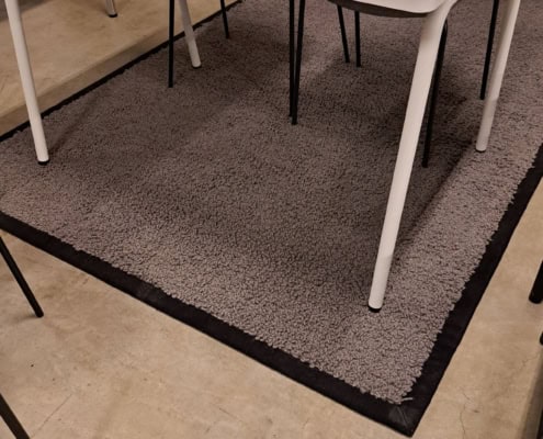 Det er muligt at skære direkte i tæppet, for anden form eller størrelse, grundet den særlige filt bagside.