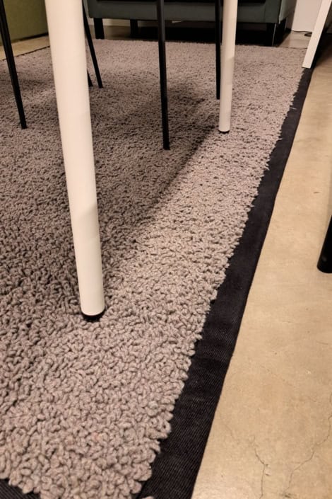 Et tungt tæppe, som ligger pænt til gulvet.