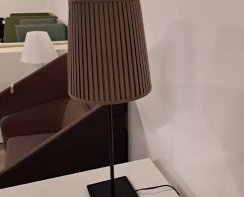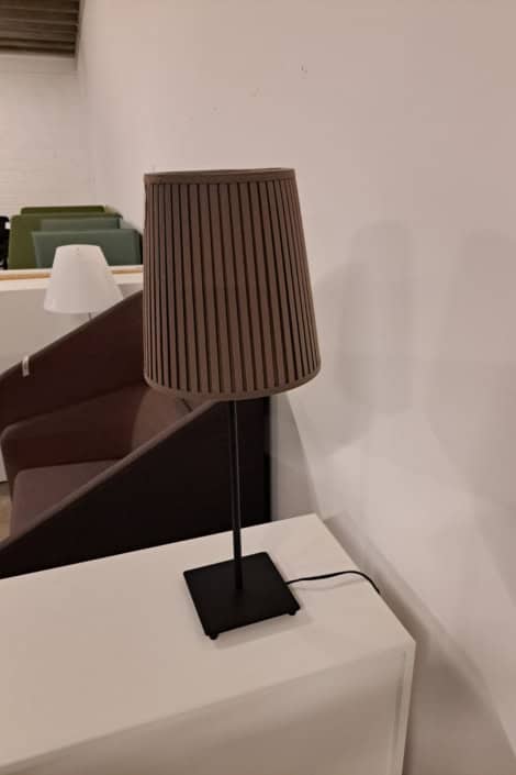 Bordlampe med brun stofskærm