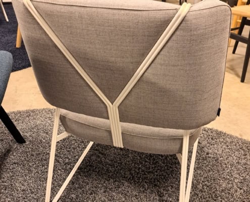 Loungestol Eyes, med “hul” i ryggen er en lile kompakt loungestol, med en overraskende god komfort.